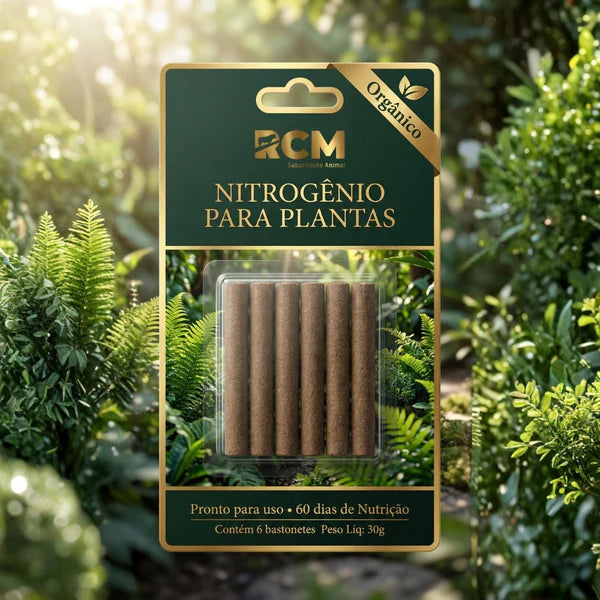 O Bastonete Golden é um fertilizante 100% orgânico em formato de bastonete, feito com farinha de casco e chifre bovino (queratina natural) e nitrogênio orgânico total 12–14%. Ele entrega liberação gradual em duas fases: uma resposta inicial nas primeiras semanas e manutenção prolongada por até 60 dias, ajudando a manter a planta nutrida com menos reaplicações e sem picos de adubação.